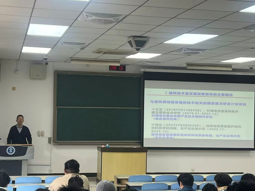 基于多年一线现场工作与科研经验,严军华博士结合“十三五”、“十四五”国家重点研发计划项目课题,为本科生带来了题为《相变储热技术在建筑领域的应用》的成果分享。课程围绕“双碳”目标的实现路径,深入阐述了相变储热技术在建筑领域的重要性,系统分析了我国国民用能需求与储热产业化之间的逻辑关系,并深入剖析了峰谷电价政策的成因及相变热库储热系统实现商业应用的必要性。企业导师通过鲜活的产业案例与实际用电需求相结合,以真实数据为支撑,为同学们呈现了一堂生动深刻、干货满满的课堂教学。