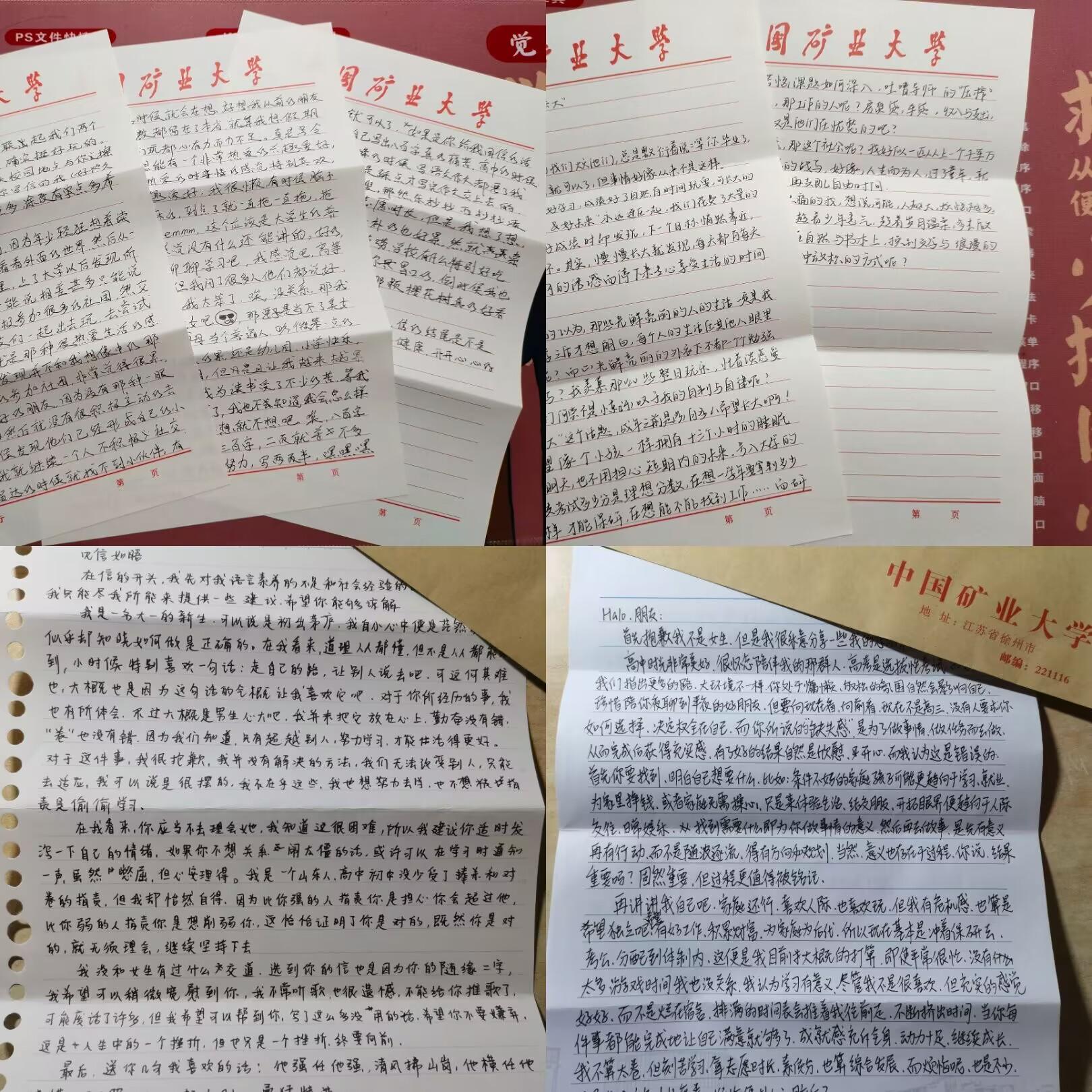 随着信息时代到来,网络让通讯变得便利快捷,书信渐渐消失在大众的视野中。但手写的文字所携带的浓厚感情,是电子字符无法传递的。本次活动采用匿名写信、回信的形式进行交流,旨在以书信形式增进交流、扩大社交范围。各位同学通过写信分享学习生活中的喜悦或是自己的烦恼、困惑等。书信经由“工作驿站”寄出,并与一定时间内收到回复。在信件传递的过程中,真诚质朴的文字深深地打动了每一位参与者,优雅的汉字、温暖的笔触、点缀的图案再次让大家感受到中华文化的博大精深和来自同学的关爱。参与活动的张良玉同学说到:“通过活动中书信的交换,解决了困扰我很久的一个问题,非常感谢来自笔友的建议。参与其中,也让我感受到了大家团结友爱、互助沟通的精神,今后我也会继续保持书信、留言的这个习惯,希望也能带给他人一点帮助。”