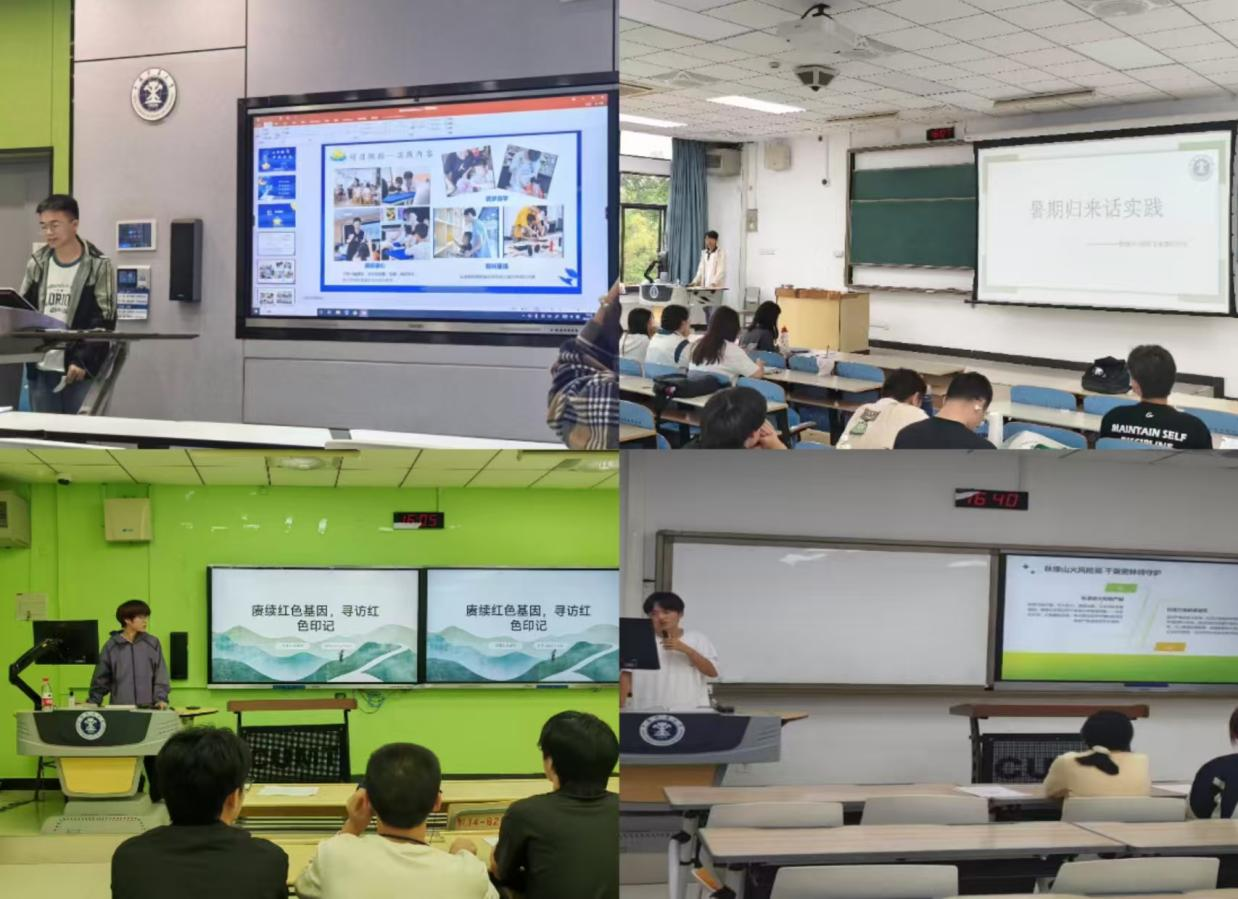 答辩过程中,各实践团队依次上台,通过PPT演示、实景照片展示、案例分享等形式,生动呈现暑期实践的历程与收获。各团队实践内容既贴合学院低碳能源专业特色,又紧扣思想引领与社会服务需求。例如革命精神传承团队重走红色足迹,前往革命纪念馆参观、采访老党员、拍摄红色故事短视频,24级9班赵方阳同学在汇报台儿庄实践时感慨:“深刻体会到抗战战士的艰难与爱国情怀,我们必当不忘初心建设祖国”。活动现场互动氛围浓厚,答辩结束后,班级成员围绕实践细节提问交流,评委针对成果成效量化、缩减答辩时间等问题提出优化建议。各班级均表示将吸收建议,为后续实践积累经验。