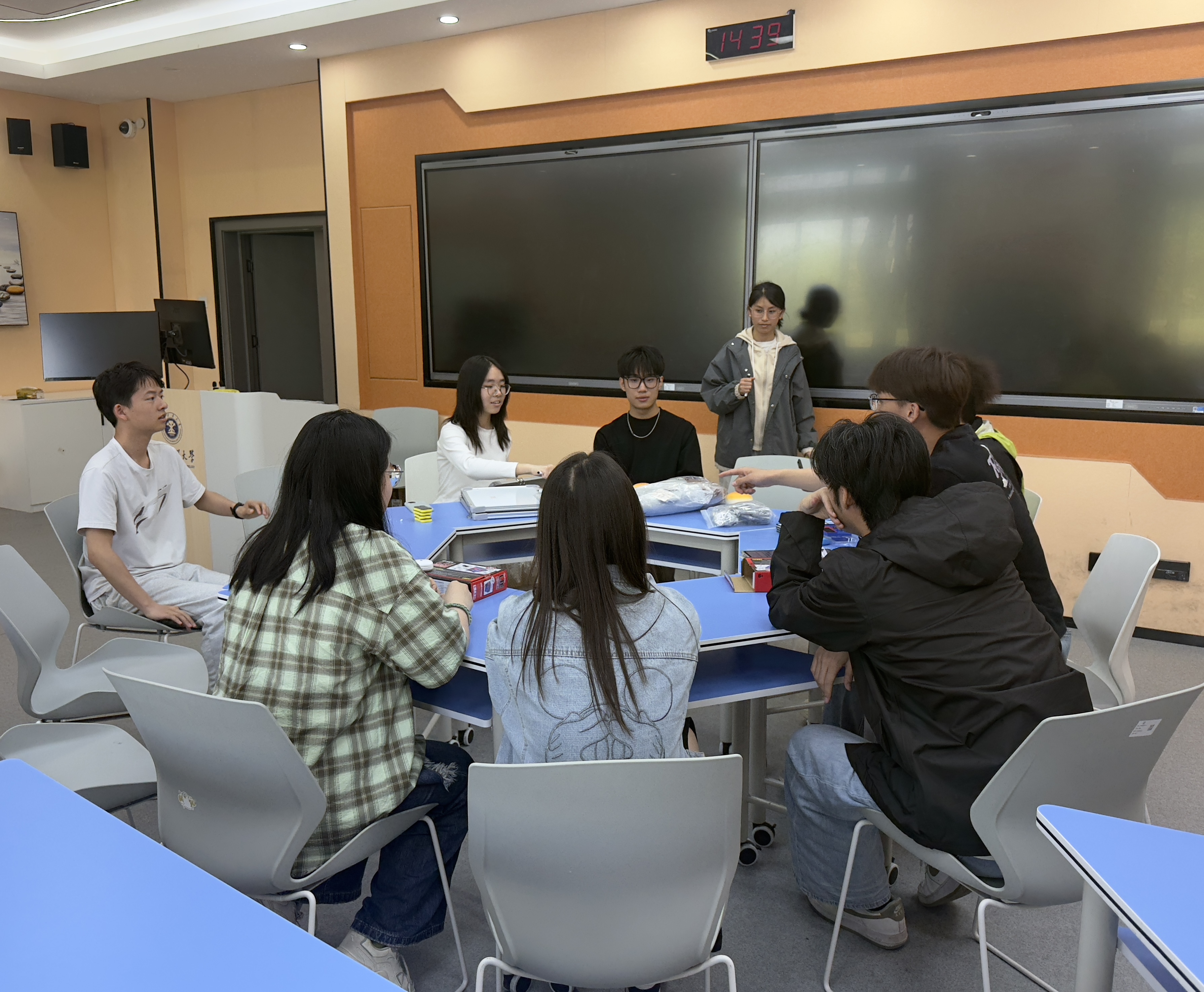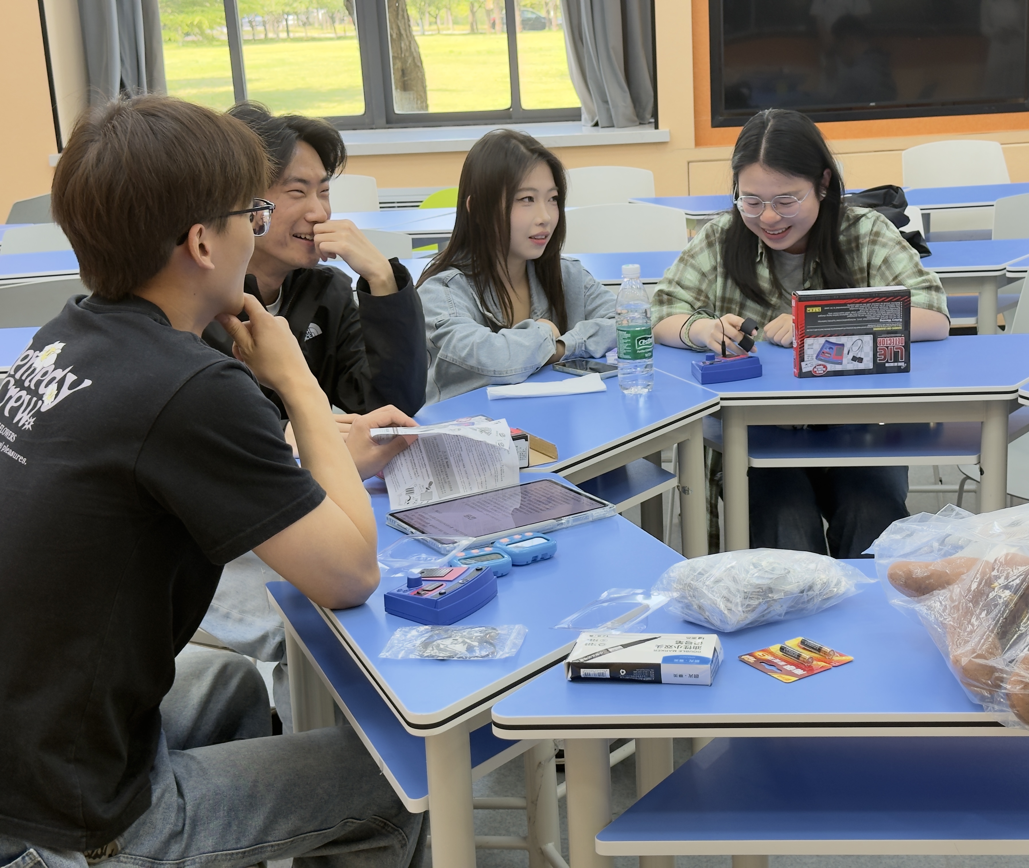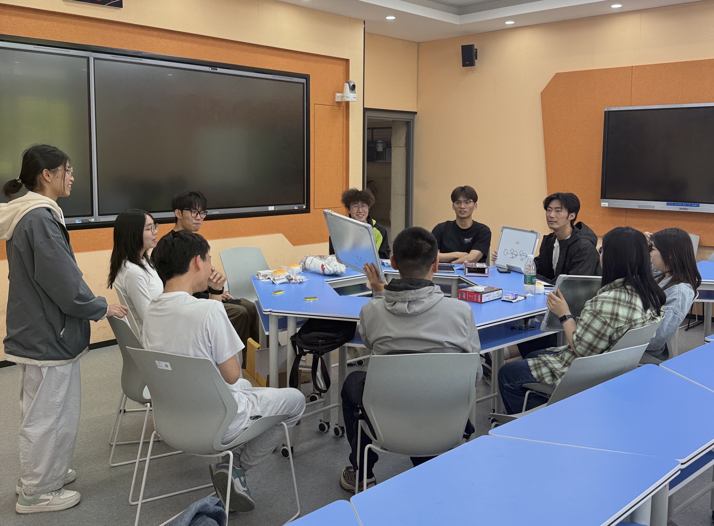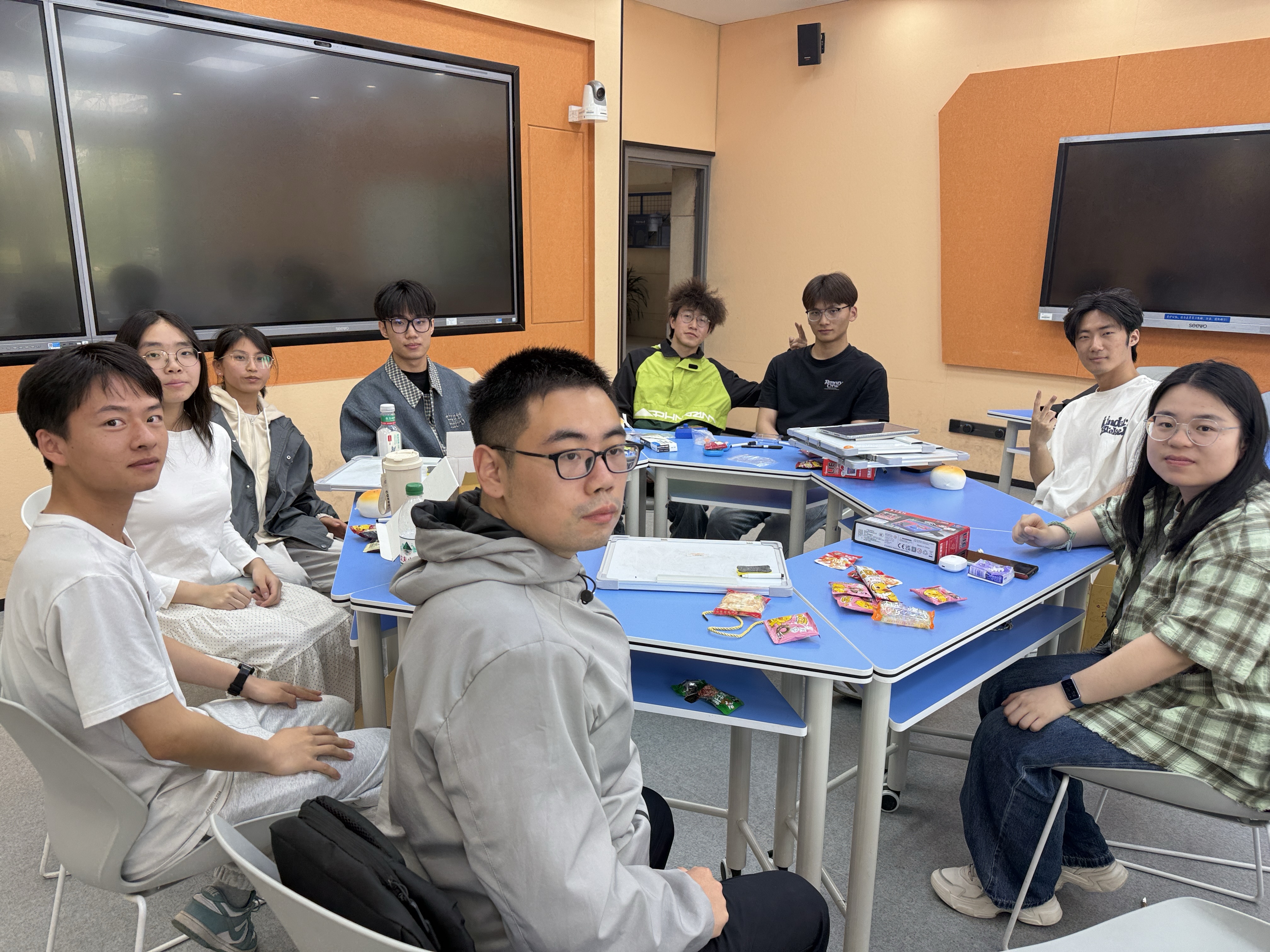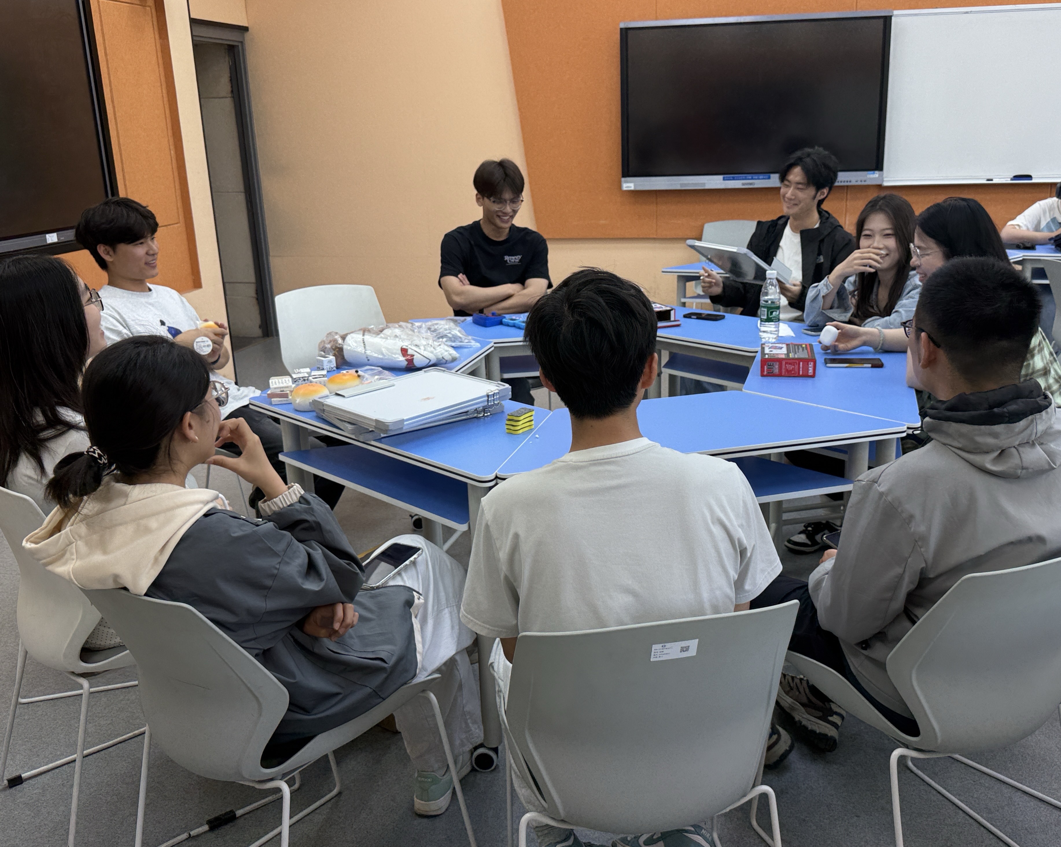 本次活动紧扣“研途心栖”主题,以“四个游戏、一份快乐、一次放松”为主线,将趣味互动与解压需求深度融合。现场设置四大经典游戏环节:“测谎仪”游戏围绕科研日常与校园生活展开,同学们围坐互动、坦诚作答,在轻松的调侃中快速打破隔阂;“数字炸弹”游戏以数字猜谜为载体,猜中“炸弹”的同学接受趣味小惩罚,紧张又欢乐的氛围有效释放了大家日常积累的紧张情绪;“你画我猜”环节巧妙结合学业科研与轻松日常话题,同学们即兴创作、踊跃抢答,在欢声笑语中缓解压力、增进默契;脑洞大开的“驴唇不对马嘴”游戏,通过荒诞有趣的词语组合制造爆笑效果,让同学们在纯粹的欢乐中卸下疲惫。每一个游戏都成为连接彼此的纽带,同学们在互动中拉近距离,在欢笑中释放压力。活动尾声,全体同学合影留念,并收获了学院精心准备的暖心小礼品,满载欢乐与温暖而归。