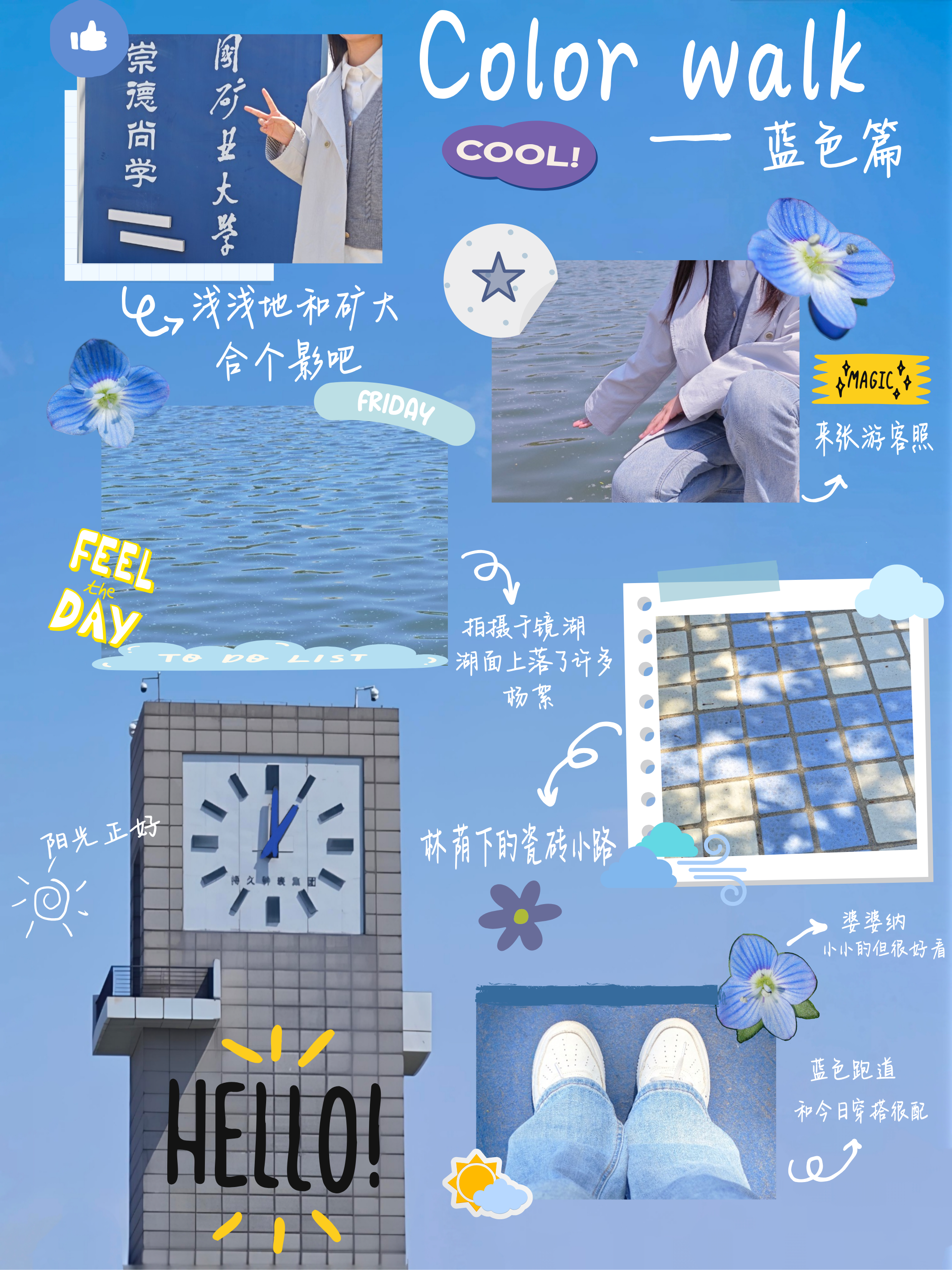 活动以“绘彩矿大”为主题,创新采用“穿搭色系+校园City Walk”形式,面向学院全体学生开放参与。参与者选定专属穿搭色彩,漫步校园各处,在图书馆、操场等场景中,寻找与衣物同色的校园角落,用镜头定格衣景合一的美好瞬间,最终以Plog、创意拼图、图文专辑等形式完成作品创作。工作人员按比例评选出一等奖2人、二等奖5人、三等奖9人,并整理优秀作品进行宣传展示。一位同学表示:“活动以轻松趣味的方式引导我发现春日校园的独特之美,在春日漫步中我也感受到了斑斓色彩与校园生活的融合之趣”。