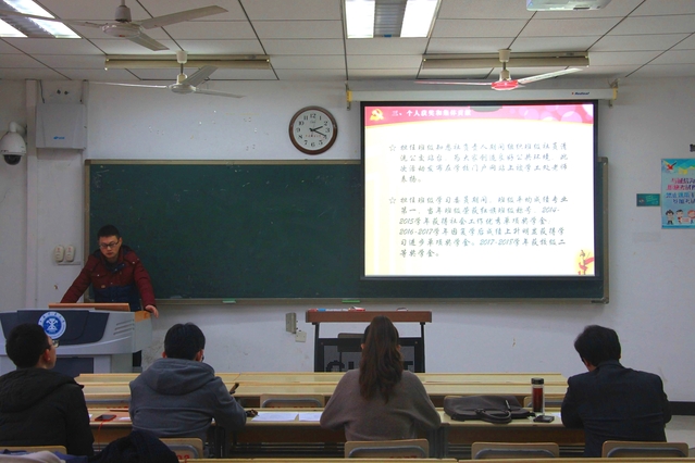 为进一步端正入党发展对象的入党动机,公平公正地发展新一期预备党员,同时敦促预备党员不忘初心,对符合发展预备党员条件的同学与考察期满一年的预备党员同志进行先进性作用发挥的考察,12月5日下午2点,在博四C302、C303、C304、C305分别开展了本科生和研究生党员先进性作用发挥述职答辩。