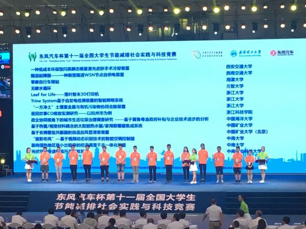 8月7-9日,第十一届全国大学生节能减排社会实践与科技竞赛在武汉理工大学举办。学院在本次竞赛中荣获全国一等奖1项、三等奖2项。