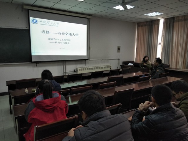 会议第三部分由前往西安交通大学进行核电课程进修的连佳和钱琳两位老师做经验报告。两位老师详细介绍了关于我校教师进行进修的相关流程,并向全系教师阐述了本次进修院校的相关专业的教学特点。