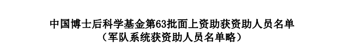 批中国博士后科学基金面上资助获奖名单,电气与动力工程学院5