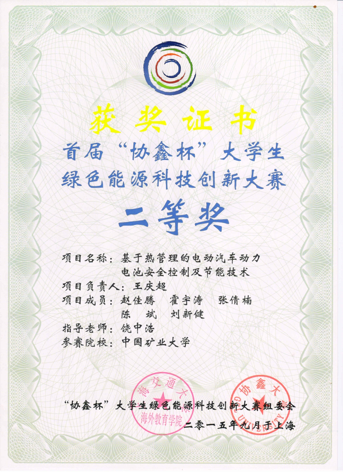 在共青团中央学校部指导下,协鑫大学主办的这一赛事以"创享绿色能源"为主题,自今年3月启动以来吸引了全国30多所高校的170余件作品报名参赛,进入决赛的80件作品于9月21日在上海进行了最后的现场展示,经过评审专家的封闭评审,最终决出1个特等奖、8个一等奖、15个二等奖、25个三等奖,其他入围作品获鼓励奖。电力学院团队围绕“创享绿色能源”为主题,以“基于热管理的电动汽车动力电池安全控制及节能技术”作品博得了评委们的认可,参赛作品体现了同学们对未来科技、绿色能源的创想,把产业界的需求变成了实实在在的创新成果。