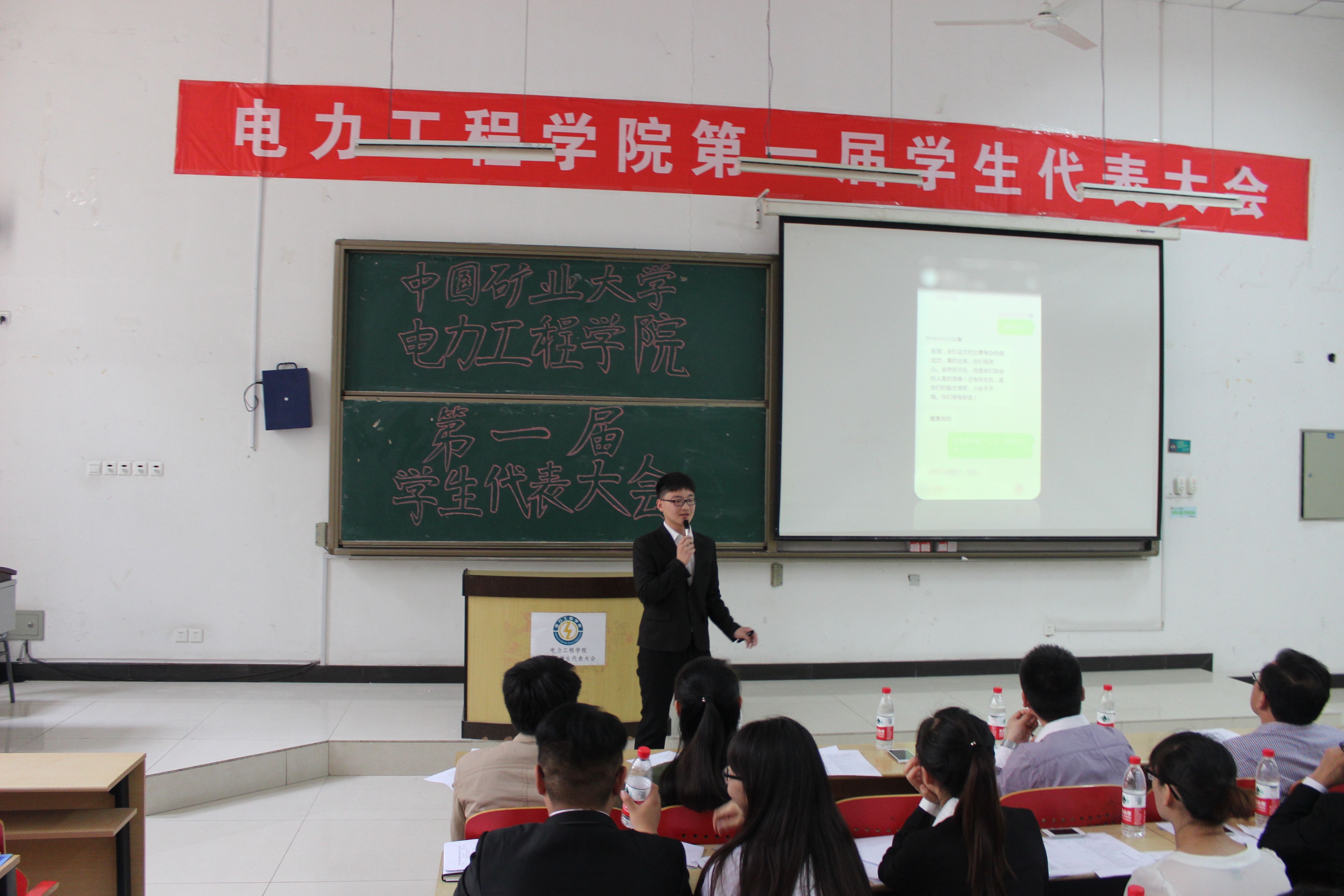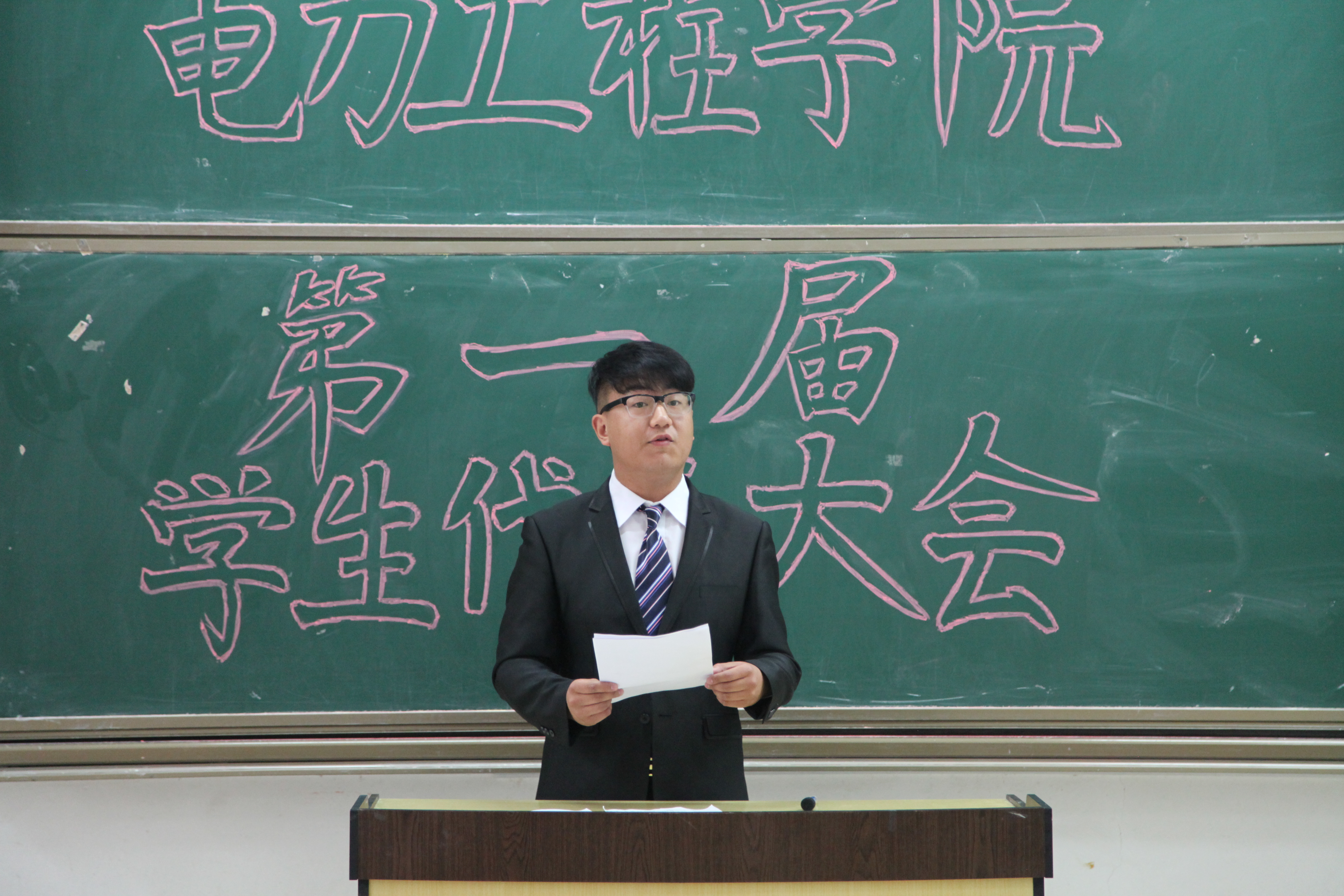 电力工程学院学生代表大会的倡议书,新一届主席王浩楠开始进行就职演说,一方面表达了对第四届电力团委学生会的赞扬与感谢,另一方面强调了学生会的职能,也对自己将来一年的计划作了承诺与保证,从内部建设、对外交流、科技创新等三方面陈述了自己对于第五届电力团委学生会的希望。最后,大会在庄严的国歌声中圆满结束。
