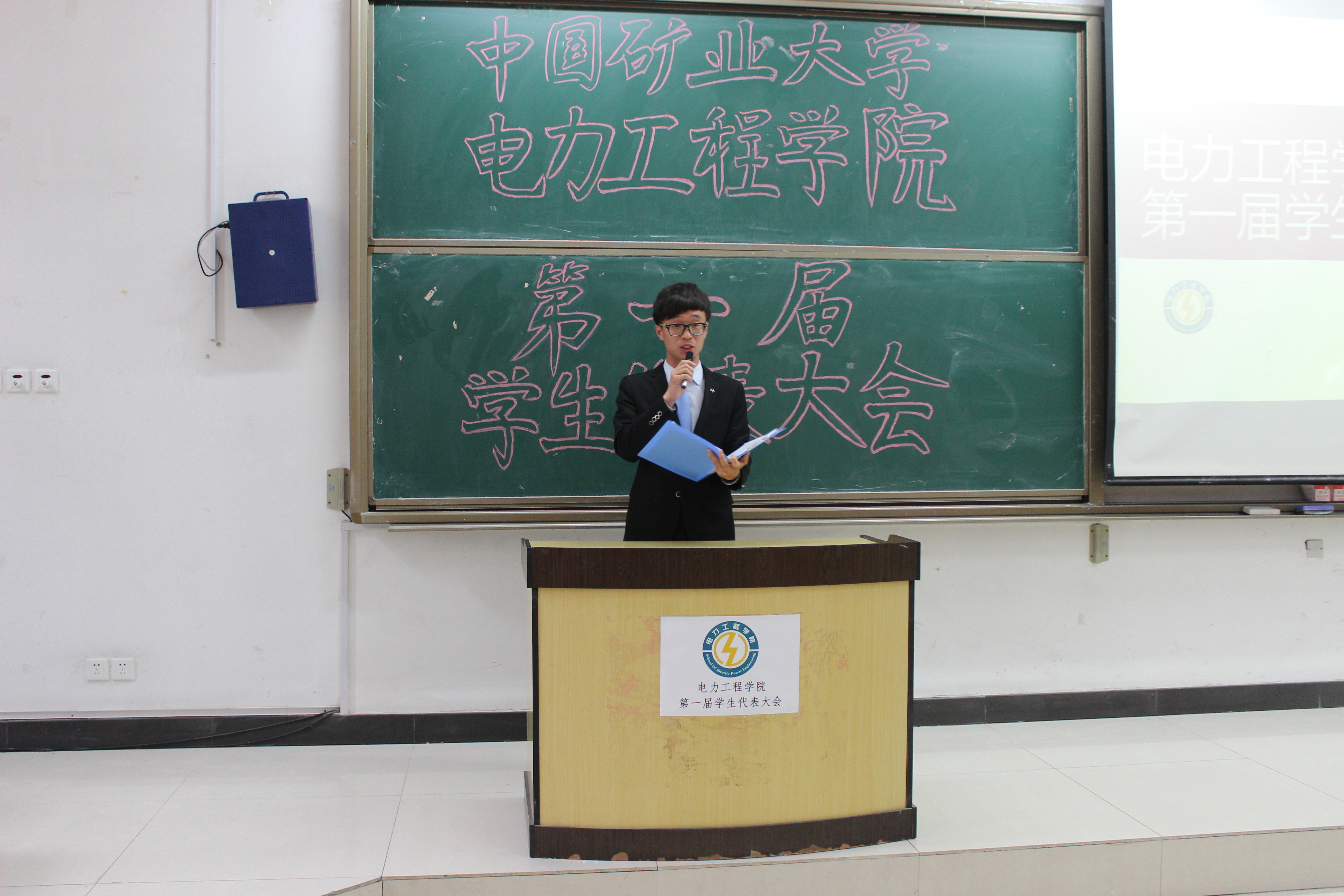 5月23日,电力学院第一届学生代表大会在教二C101拉开帷幕,出席此次大会的嘉宾有电力学院院长李意民、党委副书记张磊、学生工作办公室主任孙婉、团委书记曹海洋以及各级辅导员老师。来自电力学院的本科生与研究生共160名代表参加了开幕式,此次大会由洪开煜主持。