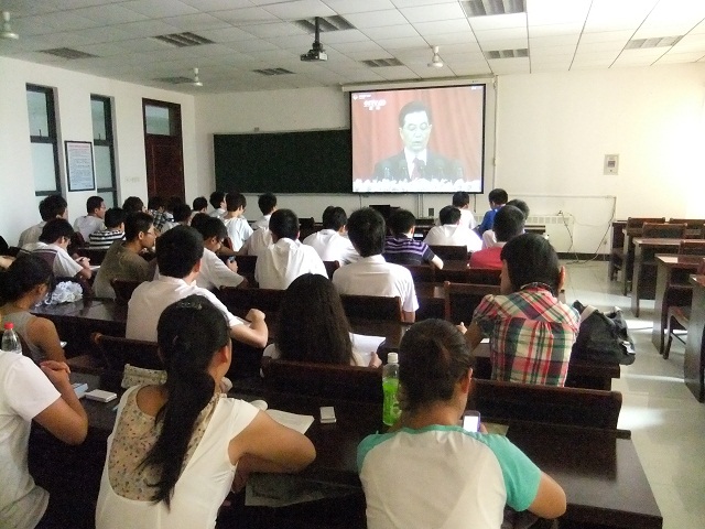 2011年7月1日上午10点,51视频所有领导及教师在材料B414收看庆祝建党90周年庆祝大会实况直播,51视频部分学生在机电A311收看庆祝建党90周年庆祝大会实况直播。