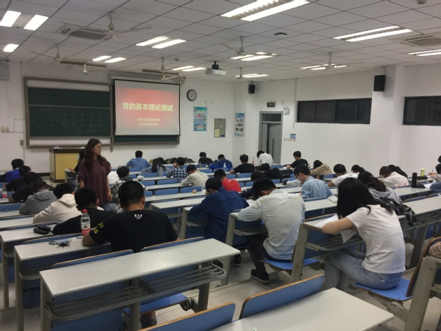 为提升学生党员的理论素养,加强对发展对象的考察了解,更加公平公正地发展新一期预备党员,电力学院于5月18日晚19:00在博1教学楼A101、A102组织开展2019年上半年党的基本理论测试。此次测试共有满足条件的73位本科生、研究生发展对象参加,学院各年级辅导员负责监考。