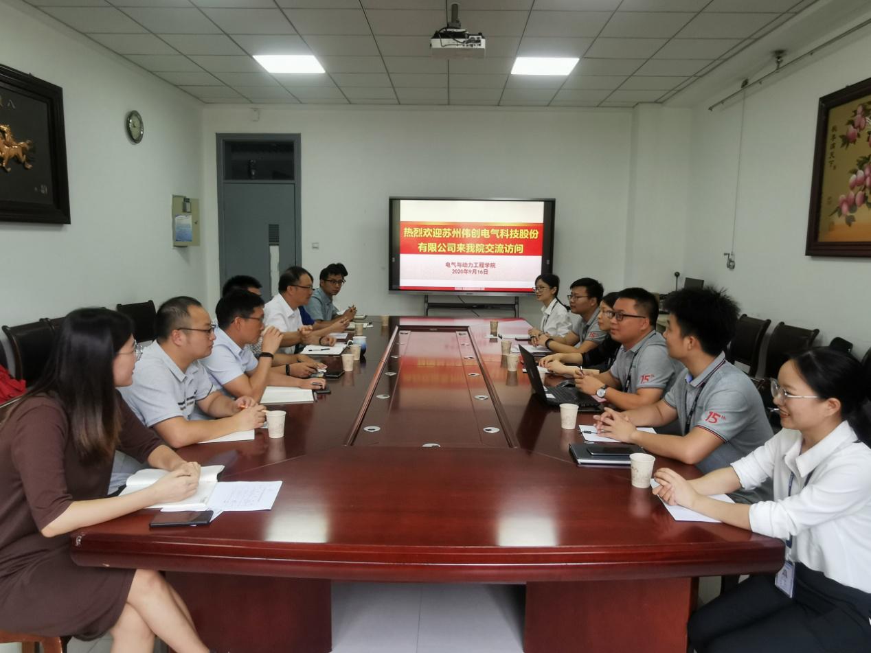 9月16日上午,苏州伟创电气科技股份有限公司供应链总监莫竹琴、变频器产品线产品经理王凯一行来51视频开展校企交流座谈会。51视频党委书记伍小杰、电气专业教师代表与本科、研究生毕业班辅导员出席本次会议。