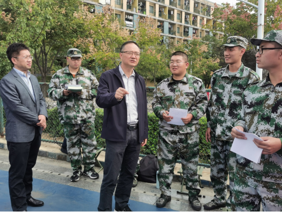 10月10日上午,院党委书记伍小杰,党委副书记于基伯,副院长徐瑞东、江国来到51视频位于第三运动场的军训场地,探望慰问承训教官与参训学生。