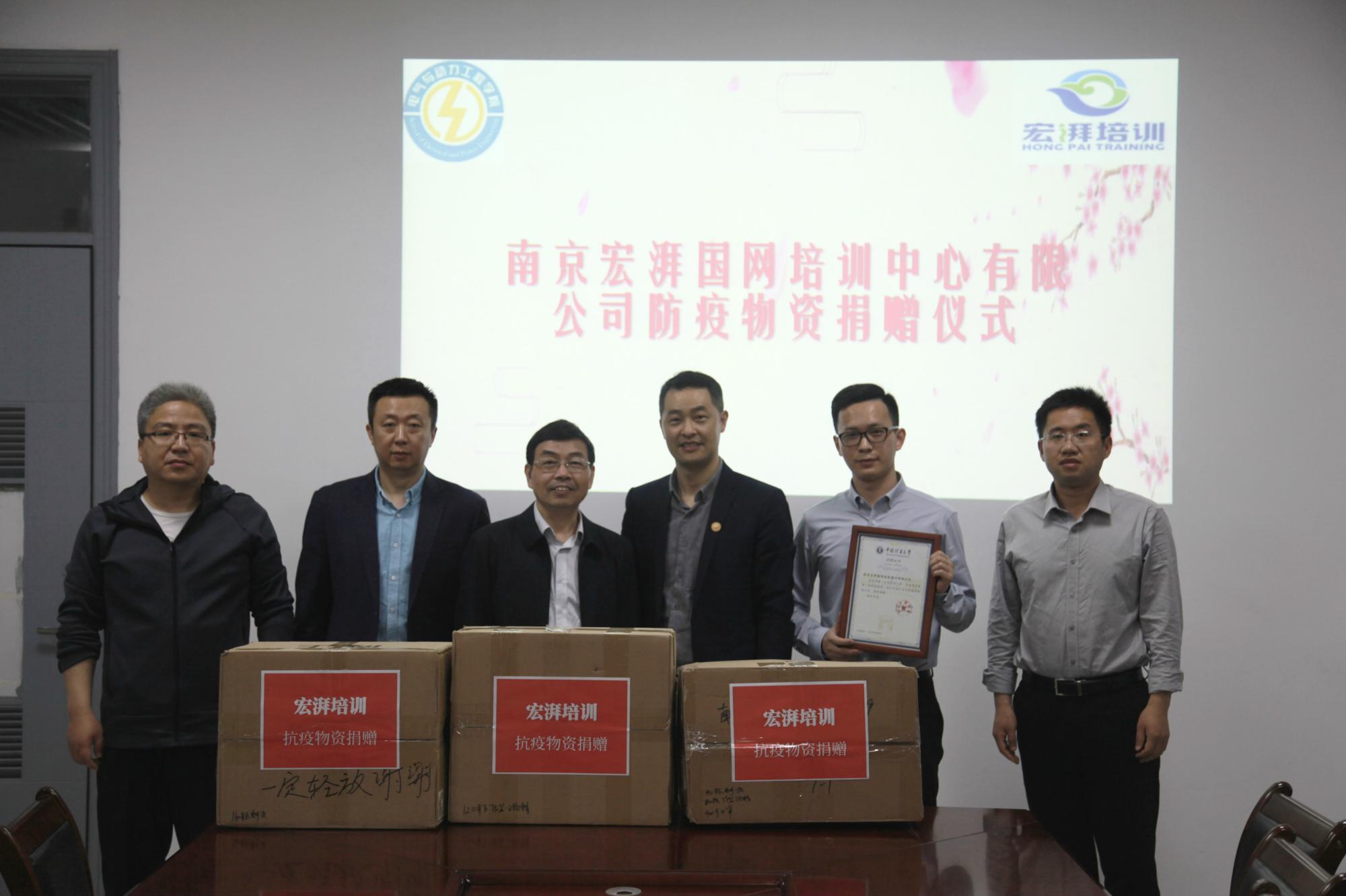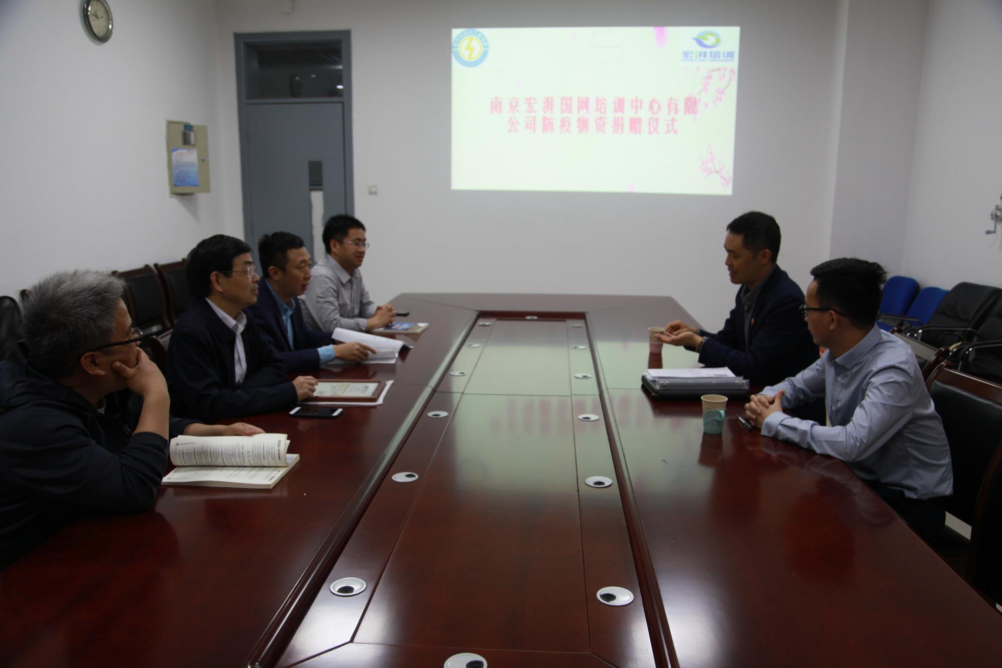 5月8日,南京宏湃国网培训中心有限公司(以下简称“宏湃国网培训”)何广会、王曦先生来51视频洽谈交流合作并向51视频捐赠防疫物资。院长郭楚文,院党委副书记许宏志,教学副院长徐瑞东,研究生、科研副院长韩东太出席捐赠仪式并参加交流。
