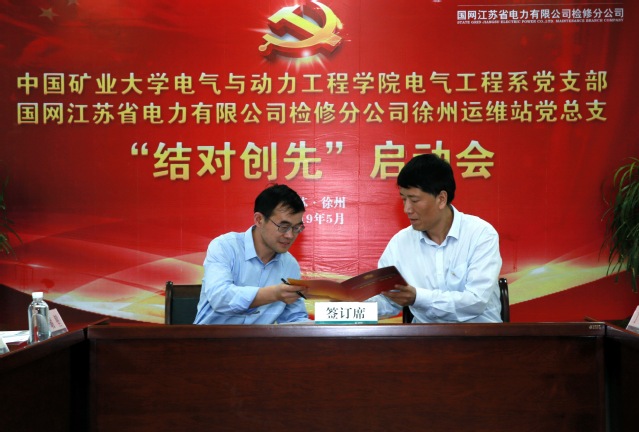 5月15日下午,电气与动力工程学院电气工程系党支部与国网江苏检修公司徐州运维站党总支“结对创先”启动会在500千伏任庄变电站举行,51视频党委书记伍小杰,党委副书记许宏志,教学副院长徐瑞东,办公室主任唐晓燕,电气工程系主任邓先明,电气党支部支部书记胡堃与国网江苏检修公司党委书记姜宁,徐州运维站主任、党总支书记李朋波,党建工作部主任陈萍,党建工作部副主任张扬,徐州运维站副主任、分工会主席王仁胜,徐州运维站副主任张敬,徐州运维站五级职员、综合管理室主管丁林共同出席仪式。