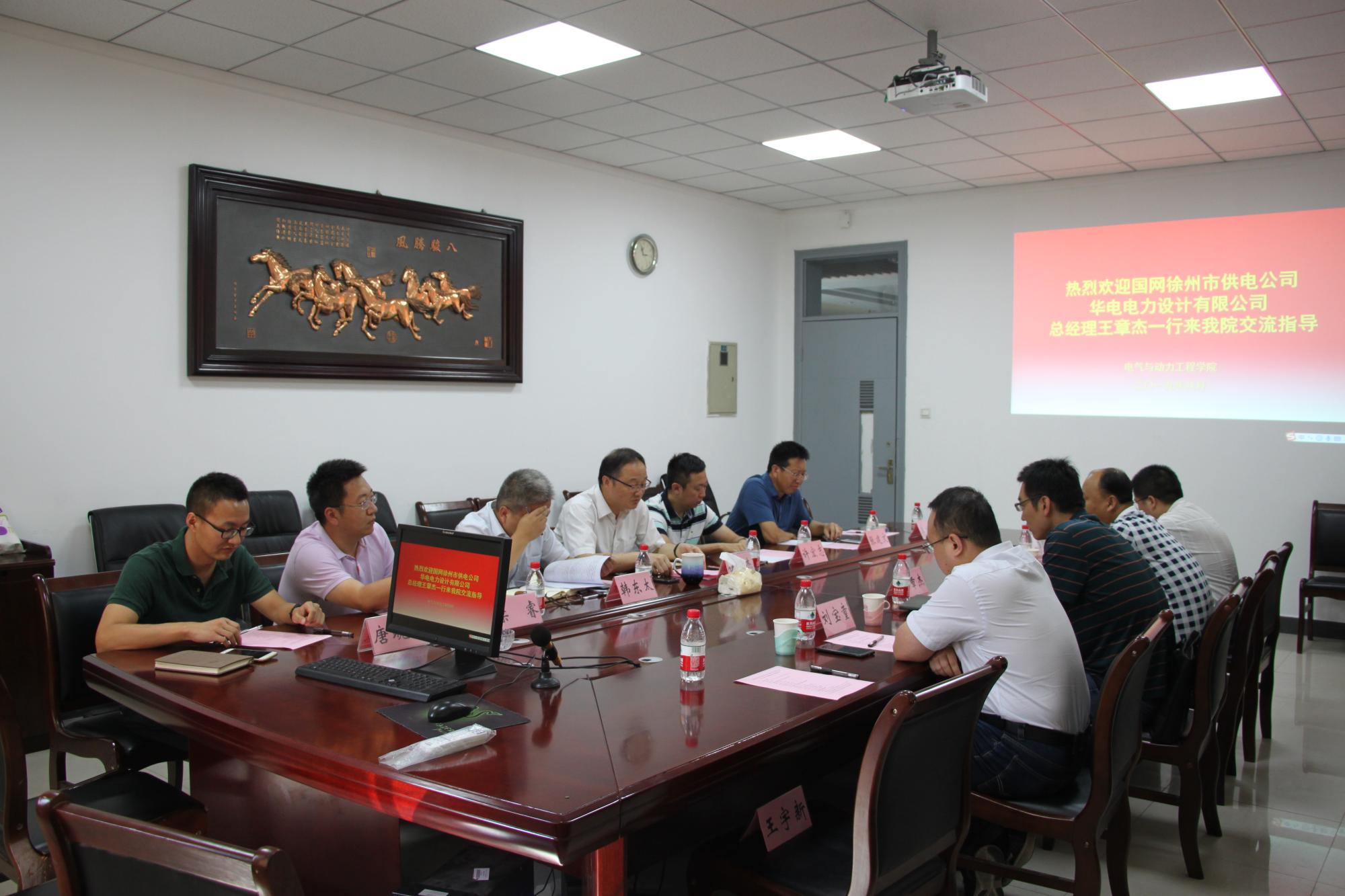 8月30日下午,国网徐州市供电公司华电电力设计有限公司总经理王章杰一行来51视频进行交流指导。本次座谈会在电力学院楼A229会议室召开,院党委书记伍小杰、院党委副书记许宏志、研究生副院长韩东太、办公室主任唐晓燕、教授梁睿、教授张建文出席座谈会。