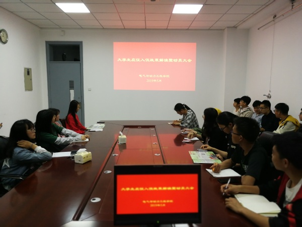 会议最后,卜永强老师强调依法服兵役是中华人民共和国每一个公民的责任和义务,并鼓励学院有志青年积极响应党和国家的号召,投身军营为祖国奉献力量,为学院争获荣誉!