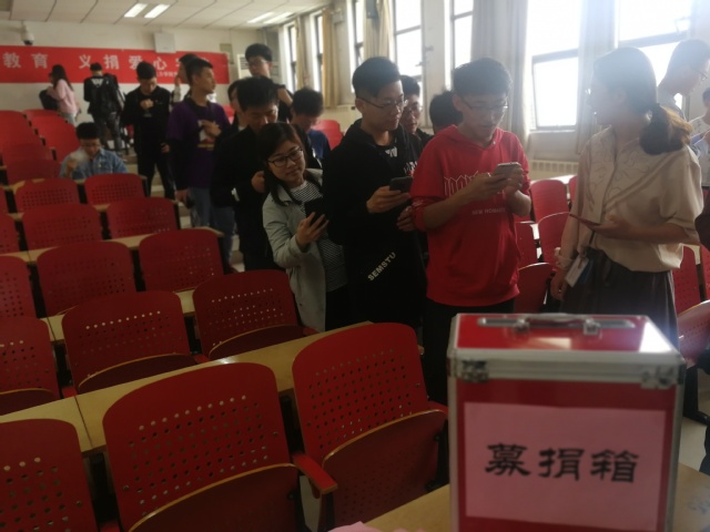 下午三点,电气与动力工程学院“情系百色教育,义捐爱心字典”党员动员大会正式开始。此次动员大会共分为四项议程。首先,电力学院学生工作办公室主任项青老师发表讲话,她通过介绍去年爱心字典捐赠情况、电力学院研究生支教活动开展情况及取得的成果,鼓励电力学院全体党员献出爱心,为贫困山区孩子尽一份绵薄之力。项青老师讲话结束后,紧接着开展大会第二项议程——远程连线位于广西壮族自治区百色市田东县支教的研究生支教团成员高鹏同学,并于当地学生代表进行互动。连线过程中,高鹏同学向大家简要介绍了广西壮族自治区百色市田东县孩子们的学习情况以及支教活动具体开展情况,以便大家对贫困山区孩子们的艰苦处境更加了解。在与当地学生代表互动时,广西壮族自治区百色市田东县的孩子们表示:他们十分感谢电力学院党员们捐赠爱心字典,在收到爱心字典后定会更加努力地学习,不辜负大家的爱心。短暂的互动结束后,大会进行第三项议程。由党员代表左安昊发起倡议,呼吁各位党员行动起来捐赠爱心字典。最后,电力学院全体党员进行现场捐赠活动,党员们排起长队,积极为贫困山区孩子献出自己的一份力量,充分展现出了电力学院党员的精神风貌。