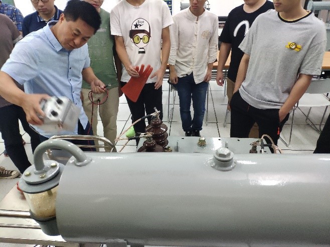 15日上午,基地洪卫星老师对配电线路相关知识进行了简要介绍。下午开始,51视频同学以班级为单位,在曹志刚老师的带领下,进行了有关施工测量技术的相关学习与实践。17日下午,在刘晗老师的带领下,同学们学习了电气设备实验中绝缘实验、特性实验的相关内容,切身体会了电气设备的使用方法与注意事项。22日上午,基地开展了安全教育与触点急救的相关教学,吴洪琴老师对安全工器具分类及心肺复苏操作要点进行了教学演示。23日下午,同学们在电力安全实训中心体验高空作业感知、人体触电体感、跨步电压体感、低压电弧体感、带电剪线体感、观看误操作导致触电事故视频、线路过载体感、人体触电警示、电伤演示等多种模拟实际带电情况。24日上午开始,同学们对低压设备故障排除的相关方法进行学习,并在课程结束时熟练掌握了低压故障现象的查找与排除方法,刘遵义老师期间提供了相关指导。26日下午,考核完成,连云港生产实习正式结束。