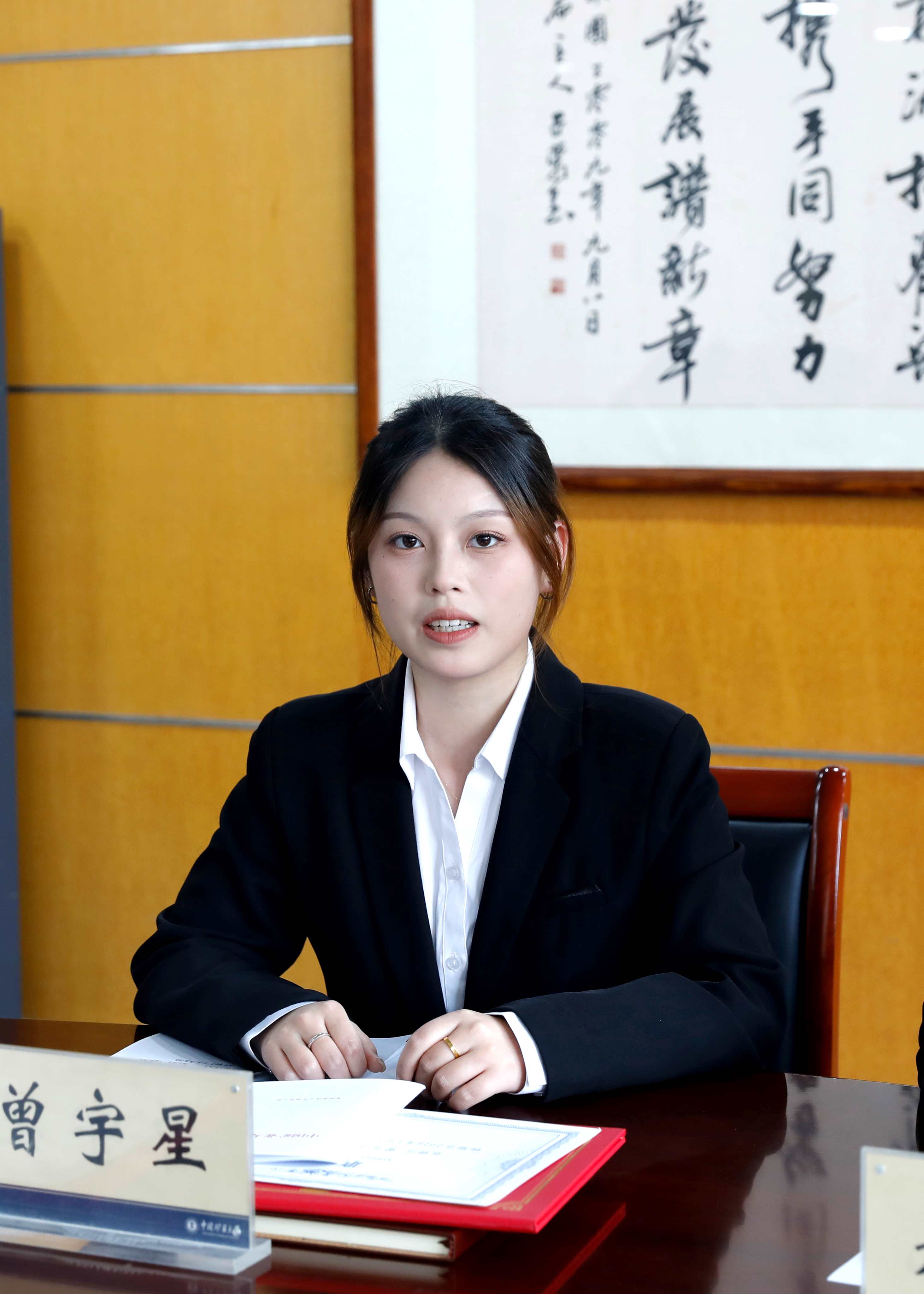 据悉,自入学以来,曾宇星始终以高标准严格要求自己,在思想、学习与学生工作中全方位锤炼自我。学习上,她勤奋笃学、深耕专业,两次荣获国家奖学金。学生工作中,她始终秉持服务同学、助力学院发展的初心,从担任班级班长,到现任学院学生会执行主席、辅导员助理,在每一个岗位上都恪尽职守、务实肯干,主动搭建师生沟通桥梁,积极协调推进班级建设,赢得了师生广泛认可,获评校优秀学生干部、校优秀共青团干部等荣誉称号。曾宇星表示,她将在未来牢记参事职责,珍惜参事身份,充分发挥自身优势,主动围绕学校发展、学生成长、校园治理等重点工作深入调研、积极建言,切实反映广大同学的真实诉求,展现能动学子的责任与担当。