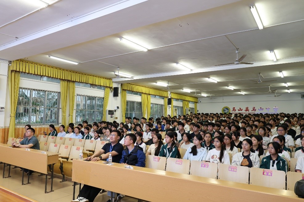 4月22日,团队走进马山中学开展高中高校人才培养衔接专题座谈会。座谈会由马山中学副校长闭炜宗主持,马山中学党委书记石克祥首先介绍马山中学办学情况并表达与我校合作意向,随后,于基伯介绍我校发展历程、学科建设及广西专项招生政策,阐述校地协同育人的重要意义,与会人员围绕高中生学业规划、高校专业选择等话题展开自由交流。座谈会后,于基伯为高一、高二年级师生代表作专题讲座,结合能源行业发展前景、专业特色与人才培养分享交流,耐心解答同学们的提问,帮助大家明晰努力方向。